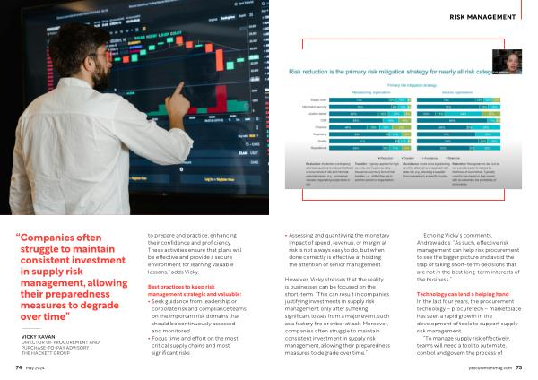 “Companies often struggle to maintain consistent investment in supply risk management , allowing their preparedness measures to degrade over time ”