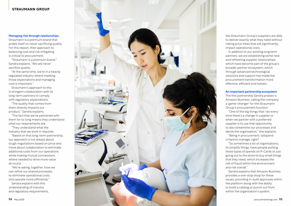 An important partnership ecosystem The first partnership Sandra praises is Amazon Business, calling the company a‘ game-changer’ for the Straumann Group’ s procurement function.