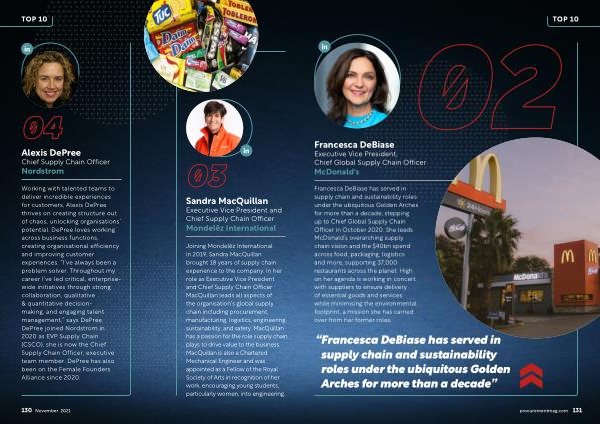 “ Francesca DeBiase has served in supply chain and sustainability roles under the ubiquitous Golden Arches for more than a decade ” procurementmag . com 131