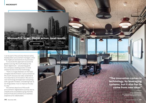 “ There is a huge emphasis on the topic of digital transformation in procurement at Microsoft , because we really understand the importance of innovation . We use our own technology and approach everything with a growth mindset , considering how to do things better , how to improve the dayto-day .”