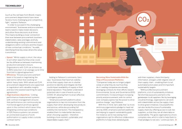 Becoming More Sustainable With the Help of Procurement Platforms “ Companies today are no longer judged solely on what they do , but how they do it . Leading companies are already leveraging contracts for their efforts toward Environmental , Social , and Governance ( ESG ) commitments . It is becoming an increasing priority and procurement , with its control over company spend , has the power to drive positive change ,” says Patteson .