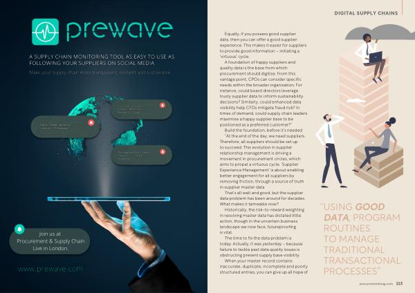 A foundation of happy suppliers and quality data is the base from which procurement should digitise . From this vantage point , CPOs can consider specific needs within the broader organisation . For instance , could board directors leverage trusty supplier data to inform sustainability decisions ? Similarly , could enhanced data visibility help CFOs mitigate fraud risk ? In times of demand , could supply chain leaders maximise a happy supplier base to be positioned as a preferred customer ?” Build the foundation , before it ’ s needed “ At the end of the day , we need suppliers . Therefore , all suppliers should be set up to succeed . This evolution in supplier relationship management is driving a movement in procurement circles , which aims to propel a virtuous cycle . ‘ Supplier Experience Management ’ is about enabling better engagement for all suppliers by removing friction , through a source of truth in supplier master data .