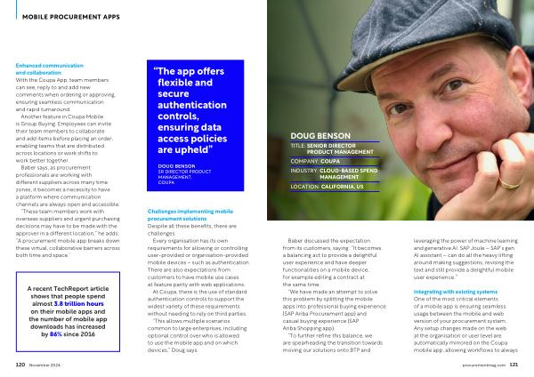 “ These team members work with overseas suppliers and urgent purchasing decisions may have to be made with the approver in a different location ,” he adds . “ A procurement mobile app breaks down these virtual , collaborative barriers across both time and space .”