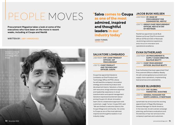 Coupa has appointed Salvatore Lombardo as Chief Product and Technology Officer ( CPTO ), where he will lead the company ’ s innovation strategy and oversee its product and development teams . Salvatore , a former SAP executive , brings extensive expertise and leadership experience in cloud transformation and spend management . Salvatore expressed excitement about joining Coupa ’ s AI-driven innovation team and its collaborative approach with customers . Leagh Turner , Coupa CEO , said : “ We are thrilled to welcome Salva to the Coupa Village and community . He comes to Coupa as one of the most admired , inspired and thoughtful leaders in our industry today .”