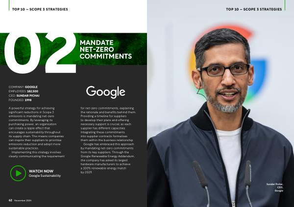 Google Sustainability for net-zero commitments , explaining the rationale and benefits behind them . Providing a timeline for suppliers to develop their plans and offering necessary support is crucial , as each supplier has different capacities . Integrating these commitments into supplier contracts formalises them within the business relationship .