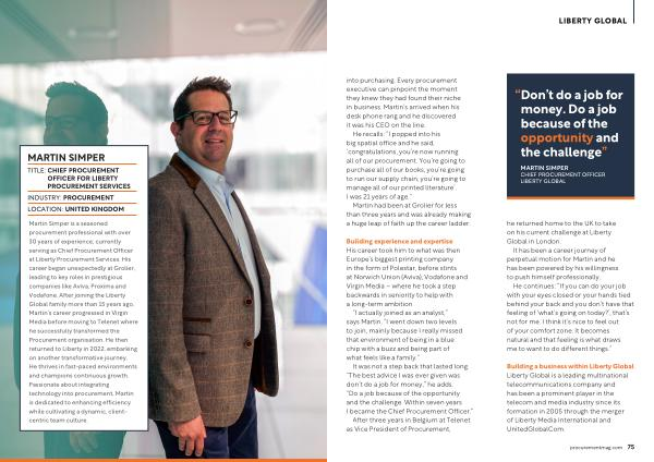 LIBERTY GLOBAL into purchasing . Every procurement executive can pinpoint the moment they knew they had found their niche in business . Martin ’ s arrived when his desk phone rang and he discovered it was his CEO on the line .