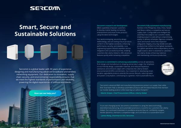 Sercomm is committed to enhancing sustainability across all operations , from design and manufacture to shipping and product usage . Our emphasis on eco-friendly design , sustainable materials , and reduced hazardous substances and emissions aligns with companies like Liberty Global ’ s environmental ( SCOPE ) commitments . Our investment in developing smart , durable , upgradable products extends the service lifecycle , reducing waste and power consumption , contributing to a greener , more sustainable future .
