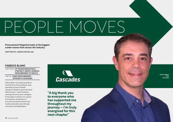 Fabrice Blanc is joining Cascades as its Chief Procurement Officer, after spending 12 years at Nestlé. Taking to LinkedIn to share the news, Fabrice wrote:“ I look forward to working with all my new colleagues at Cascades to advance our culture of excellence, accelerate our procurement transformation and create sustainable value through innovation and digitalisation.”