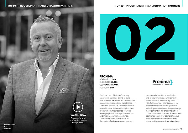 TOP 10 – PROCUREMENT TRANSFORMATION PARTNERS Gareth Evans, CEO, Proxima