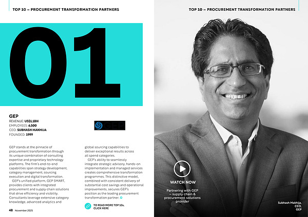 GEP’ s ability to seamlessly integrate strategic advisory, hands-on implementation and managed services creates comprehensive transformation programmes. This distinctive model, combined with consistent delivery of substantial cost savings and operational improvements, secures GEP’ s position as the leading procurement transformation partner.