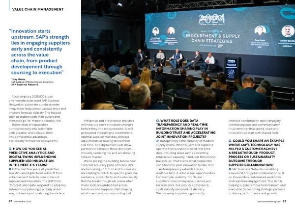 “Innovation starts upstream. SAP’ s strength lies in engaging suppliers early and consistently across the value chain, from product development through sourcing to execution”