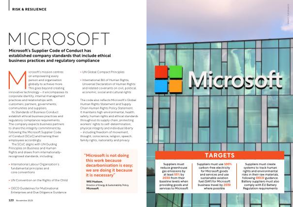 The code also reflects Microsoft’ s Global Human Rights Statement and Supply Chain Human Rights Policy Statement. It maintains high environmental, health, safety, human rights and ethical standards throughout its supply chain, protecting workers’ rights to self-determination, physical integrity and individual liberty – including freedom of movement, thought, conscience, religion, speech, family rights, nationality and privacy.