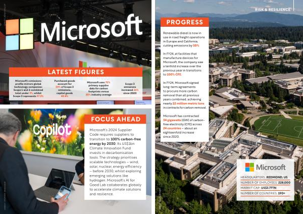 Microsoft’ s 2024 Supplier Code requires suppliers to transition to 100 % carbon-free energy by 2030. Its US $ 1bn Climate Innovation Fund invests in decarbonisation tools. The strategy prioritises scalable technologies – wind, solar, nuclear, energy efficiency – before 2030, whilst exploring emerging solutions like hydrogen. Microsoft’ s AI for Good Lab collaborates globally to accelerate climate solutions and resilience.