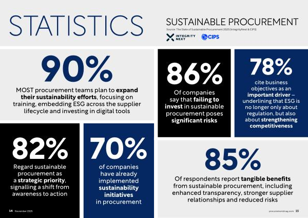 MOST procurement teams plan to expand their sustainability efforts, focusing on training, embedding ESG across the supplier lifecycle and investing in digital tools