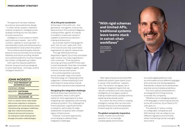 This extends to“ policy routing to configurable compliance and ESG tracking” that can adapt across different regulatory environments whilst maintaining central oversight and control. procurementmag. com 71