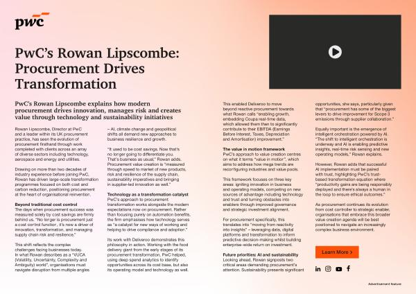As procurement continues its evolution from cost controller to strategic enabler, organisations that embrace this broader value creation agenda will be best positioned to navigate an increasingly complex business environment.