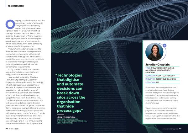 In her role , Chaplain implements Aera ’ s core technologies and also designs decision intelligence workflows for global companies . “ I am a passionate evangelist for data science and machine learning to enable predictive , self-healing supply chains ,” she says .