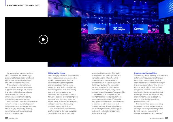 Tricia reinforces this perspective, noting that once basic procurement processes are automated,“ the data they generate empowers procurement to operate as a true business and supplier partner, driving measurable value for organisations, from supplier collaboration to risk management and sustainability.”