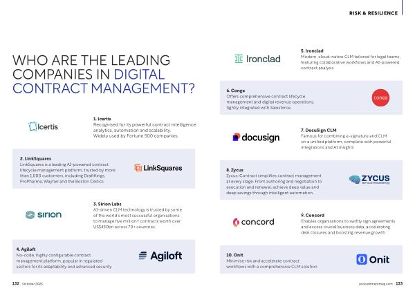 10. Onit Minimise risk and accelerate contract workflows with a comprehensive CLM solution. procurementmag. com 133