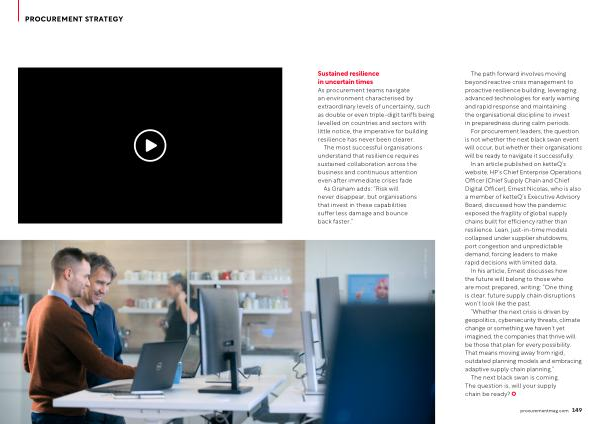 Sustained resilience in uncertain times As procurement teams navigate an environment characterised by extraordinary levels of uncertainty, such as double or even triple-digit tariffs being levelled on countries and sectors with little notice, the imperative for building resilience has never been clearer.