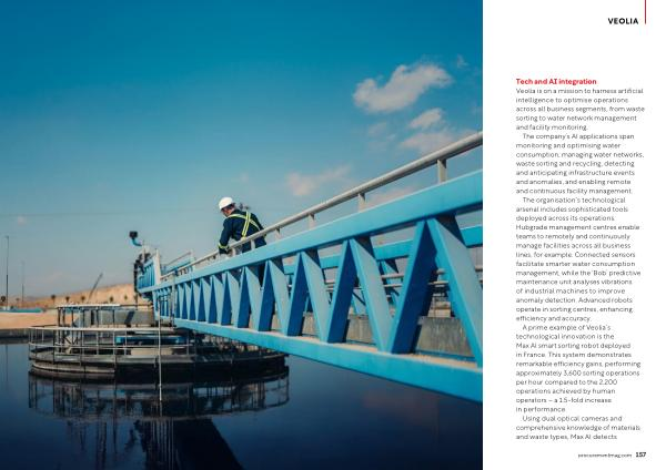 Tech and AI integration Veolia is on a mission to harness artificial intelligence to optimise operations across all business segments, from waste sorting to water network management and facility monitoring.