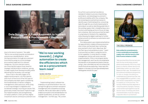 NAISSA VON PEIN DIRECTOR , GLOBAL CATEGORY INDIRECT AND PROCUREMENT EXCELLENCE , DOLE SUNSHINE COMPANY