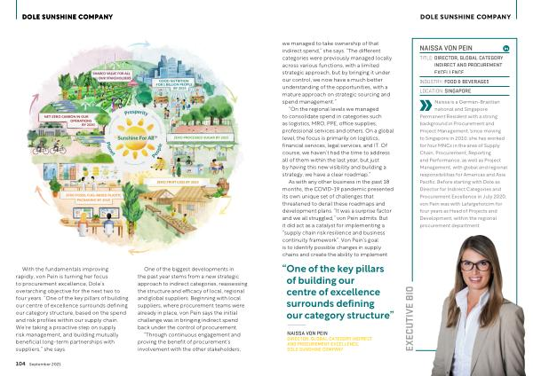 NAISSA VON PEIN DIRECTOR , GLOBAL CATEGORY INDIRECT AND PROCUREMENT EXCELLENCE , DOLE SUNSHINE COMPANY