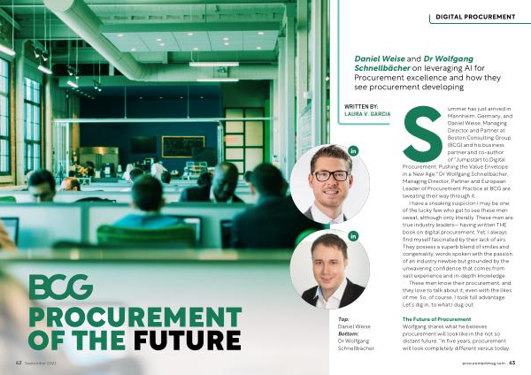 Summer has just arrived in Mannheim . Germany , and Daniel Weise , Managing Director and Partner at Boston Consulting Group ( BCG ) and his business partner and co-author of " Jumpstart to Digital Procurement : Pushing the Value Envelope in a New Age ," Dr Wolfgang Schnellbächer , Managing Director , Partner and European Leader of Procurement Practice at BCG are sweating their way through it .