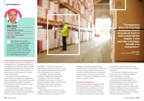 Having improved transparency in procurement and supply chain operations allows companies to make smarter decisions on selecting which suppliers to partner with , and ensure they fit in with your wider sustainability strategy .