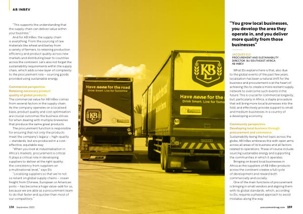 What Els explains here is that , also due to the global events of the past few years , localisation has been a natural shift for the business and procurement is at the heart of achieving this to create a more resilient supply network to overcome such events in the future . This is crucial for commercial longevity , but , particularly in Africa , a staple procedure that will bring more local businesses into the fold , and effectively provide support to small and medium businesses in a country of a developing economy .