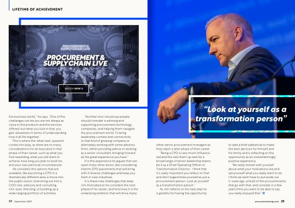 “ Another one I would say people should consider is advising and supporting procurement technology companies , and helping them navigate the procurement world . To bring leadership context and connectivity to that kind of growing company or alternately working with some advisory firms , either providing advice or working as a senior consultant , bringing forward all the great experience you have .”