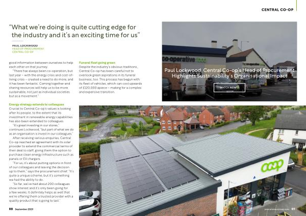 Energy strategy extends to colleagues Crucial to Central Co-op ’ s values is looking after its people , to the extent that its investment in renewable energy capabilities has also been extended to colleagues .