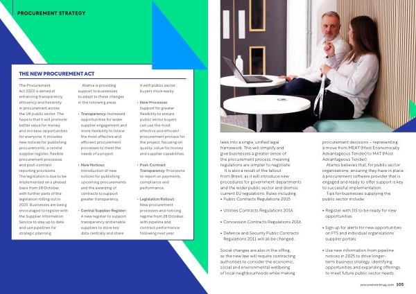 The Procurement Act 2023 is aimed at enhancing transparency , efficiency and flexibility in procurement across the UK public sector . The hope is that it will promote better value for money and increase opportunities for everyone . It includes new notices for publishing procurements , a central supplier register , flexible procurement processes and post-contract reporting provisions . The legislation is due to be implemented on a phased basis from 28 October , with further parts of the legislation rolling out in 2025 . Businesses are being encouraged to register with the Supplier Information Service to stay up to date and use pipelines for strategic planning .