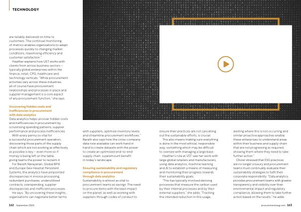 Olivier stressed that ESG practices are no longer a luxury and procurement teams must continually evaluate their sustainability strategies to fulfil their corporate responsibility : “ Data analytics provides procurement teams with greater transparency and visibility over their environmental impact and regulatory compliance , allowing them to take further action based on the results ,” he adds .