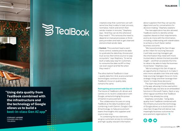 “ Using data quality from TealBook combined with the infrastructure and the technology of Google allows us to build a best-in-class Gen AI app ”