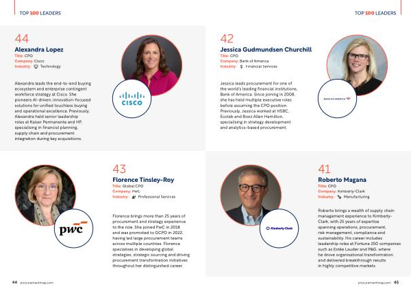 Florence brings more than 25 years of procurement and strategy experience to the role. She joined PwC in 2018 and was promoted to GCPO in 2022, having led large procurement teams across multiple countries. Florence specialises in developing global strategies, strategic sourcing and driving procurement transformation initiatives throughout her distinguished career.