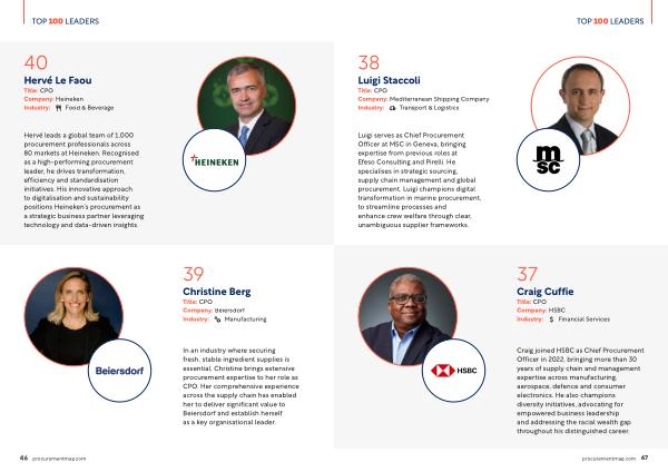 Hervé leads a global team of 1,000 procurement professionals across 80 markets at Heineken. Recognised as a high-performing procurement leader, he drives transformation, efficiency and standardisation initiatives. His innovative approach to digitalisation and sustainability positions Heineken’ s procurement as a strategic business partner leveraging technology and data-driven insights.