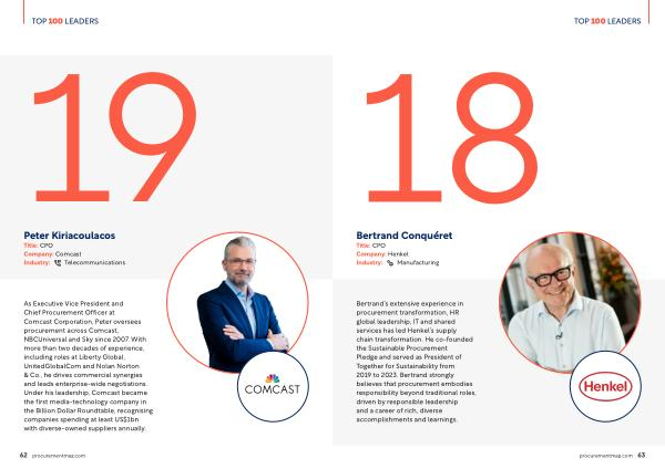 Bertrand’ s extensive experience in procurement transformation, HR global leadership, IT and shared services has led Henkel’ s supply chain transformation. He co-founded the Sustainable Procurement Pledge and served as President of Together for Sustainability from 2019 to 2023. Bertrand strongly believes that procurement embodies responsibility beyond traditional roles, driven by responsible leadership and a career of rich, diverse accomplishments and learnings. procurementmag. com 63