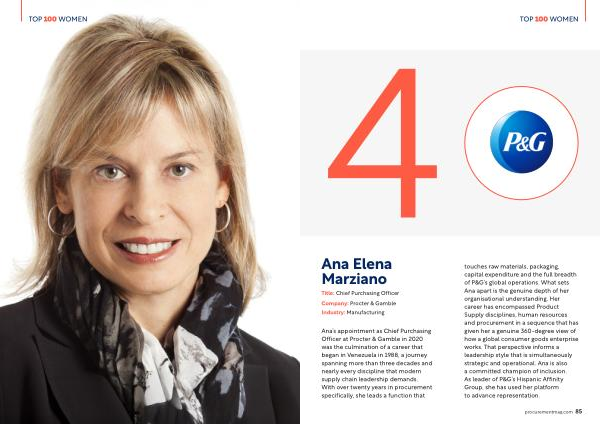 Ana’ s appointment as Chief Purchasing Officer at Procter & Gamble in 2020 was the culmination of a career that began in Venezuela in 1988, a journey spanning more than three decades and nearly every discipline that modern supply chain leadership demands. With over twenty years in procurement specifically, she leads a function that touches raw materials, packaging, capital expenditure and the full breadth of P & G’ s global operations. What sets Ana apart is the genuine depth of her organisational understanding. Her career has encompassed Product Supply disciplines, human resources and procurement in a sequence that has given her a genuine 360-degree view of how a global consumer goods enterprise works. That perspective informs a leadership style that is simultaneously strategic and operational. Ana is also a committed champion of inclusion. As leader of P & G’ s Hispanic Affinity Group, she has used her platform to advance representation.