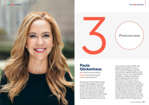 Paula brings to Bristol Myers Squibb a commercial pedigree of unusual breadth. Her career has taken her across pharmaceuticals, technology, media, spirits and consumer goods, an industry range that has forged a leader who understands value creation not as a functional exercise but as a strategic imperative that cuts across every business model. At BMS, she applies that experience to one of the most demanding procurement environments in global healthcare. Her reputation rests on two closely related capabilities: margin enhancement and operating model structuring. Where other CPOs may focus on cost reduction in isolation, Paula has consistently demonstrated the ability to redesign the organisational frameworks through which procurement operates, accelerating the translation of strategy into measurable outcomes. Her track record of driving transformation across diverse sectors has made her one of the most versatile CPOs of her generation.